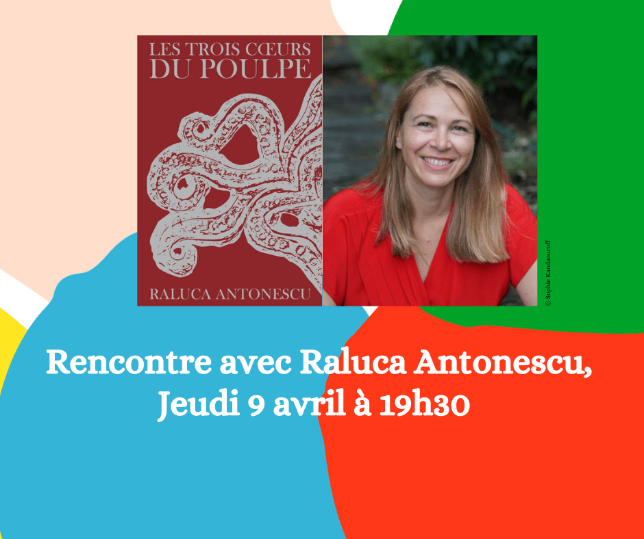 Jeudi 9 avril à 19h : rencontre avec Raluca Antonescu pour son roman  » Les trois coeurs du poulpe «